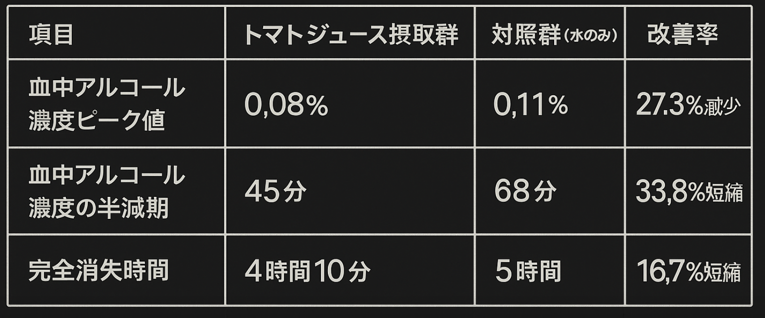 それは、トマトに含まれる水溶性成分(ピルビン酸など)が、肝臓内のアルコール分解酵素(ADHなど)の働きを活性化させるからです。