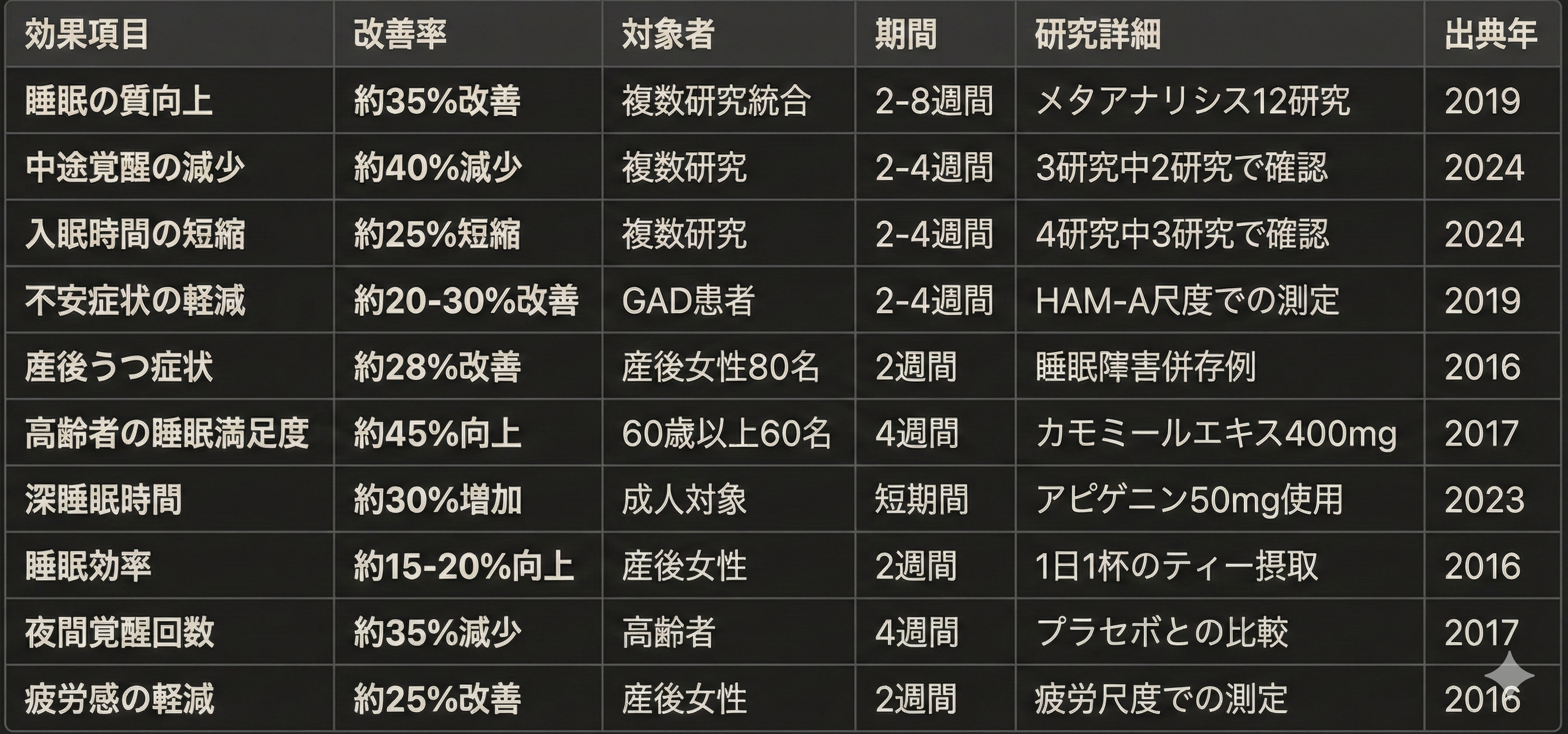 実際、ある臨床研究では、カモミールティーを2週間飲み続けただけで、
