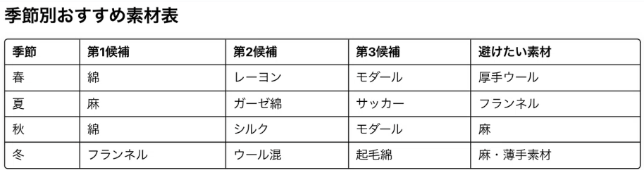 - 春と秋は、さらっとしたコットンで軽やかに。
