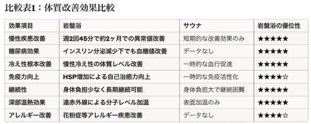 実際、岡山大学の研究では、週2回の岩盤浴を2ヶ月続けた結果、糖尿病患者の血糖値に改善が見られたという報告さえあります。