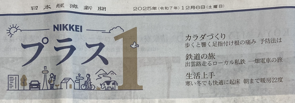 2025年12月6日(土)発行の日本経済新聞(土曜版)『日経プラス1』にて、睡眠改善コンサルタントの角谷リョウが冬の起床術について解説・寄稿いたしました。