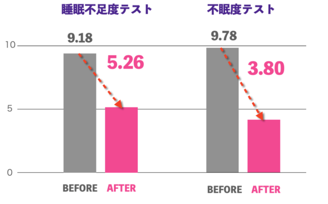睡眠不調者の睡眠スコアを一般平均まで下げられています。